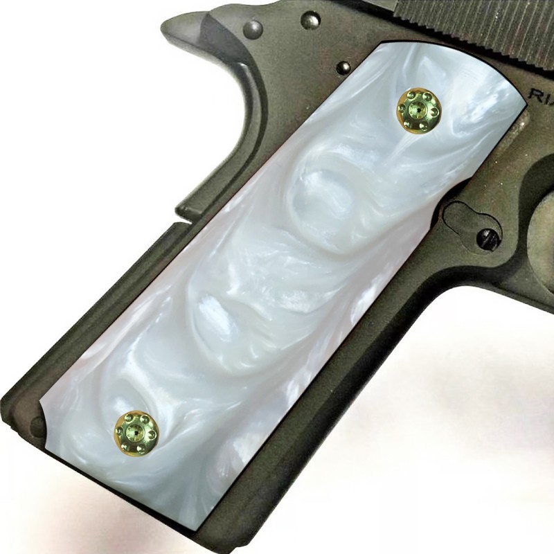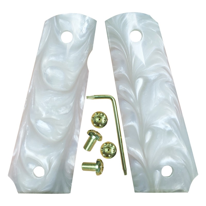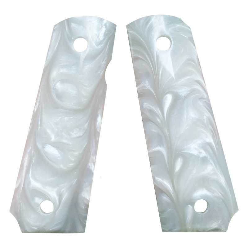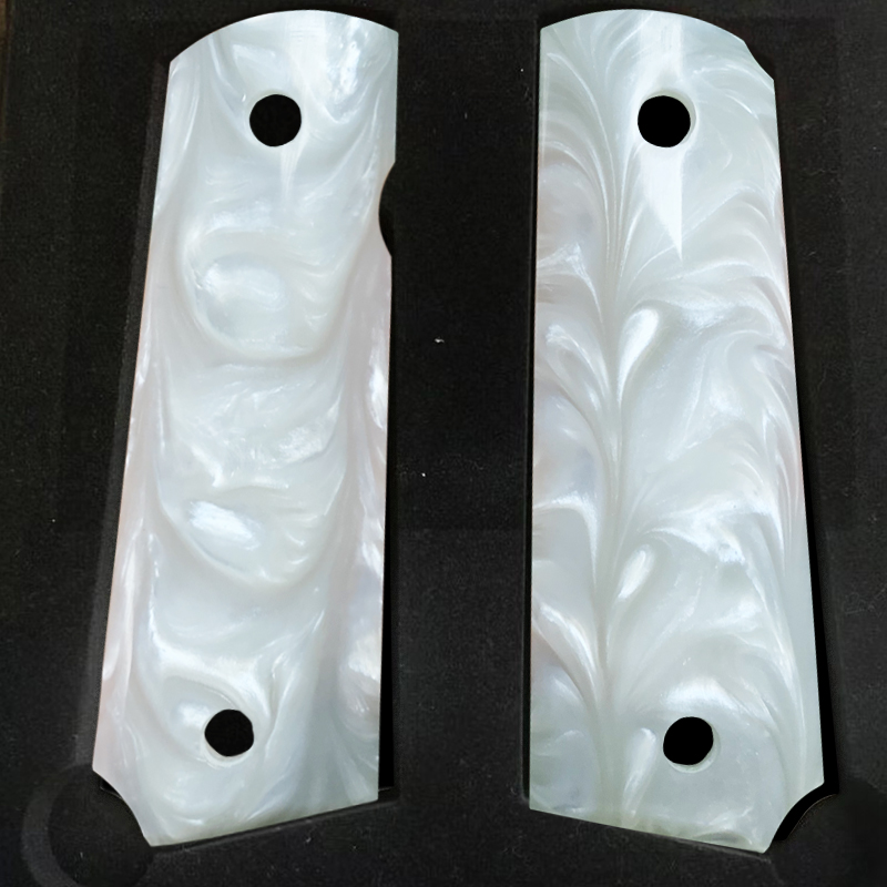 CNC Customized High Polish Cool White Pearl 1911 grips of Full Size Commander |