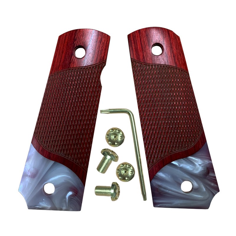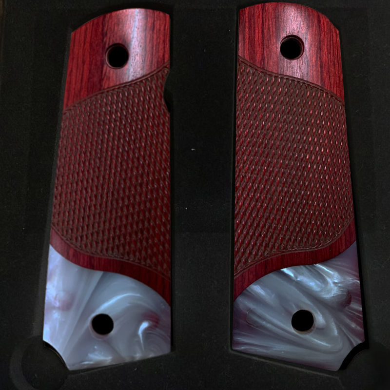 CNC Customized High Polish Cool White Pearl and Wood 1911 grips of Full Size Commander |