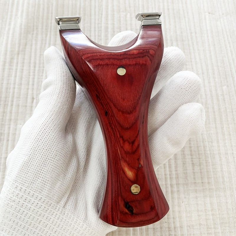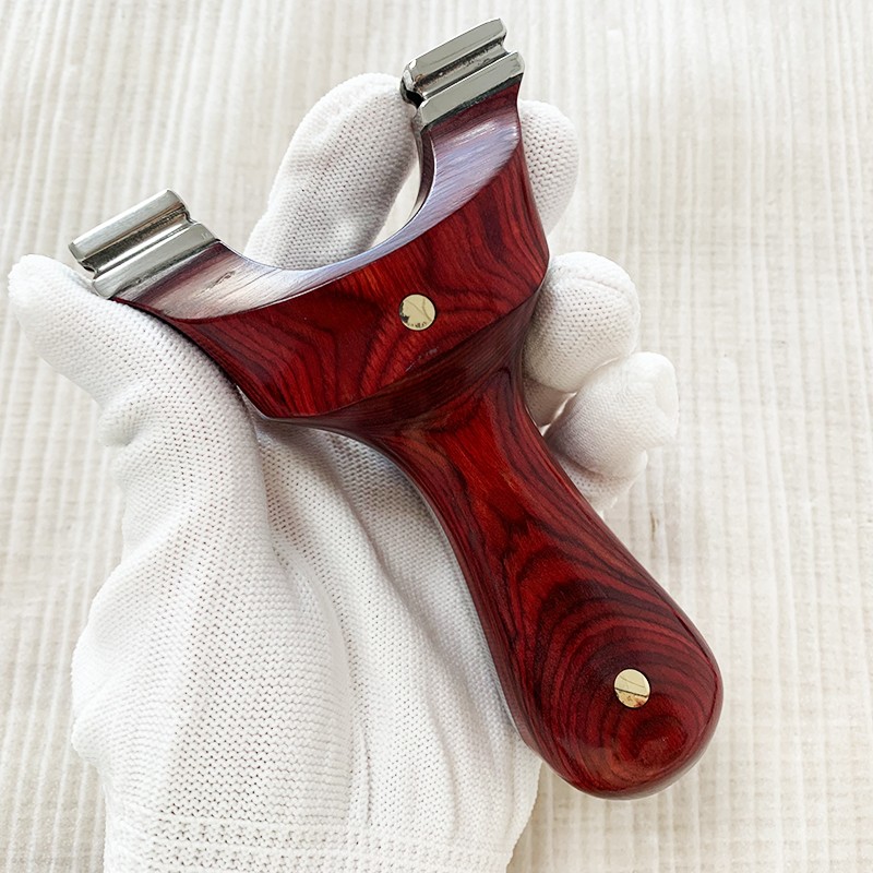 This slingshot features a high-quality laminated wood handle combined with a durable metal head, offering both strength and refined aesthetics. The ergonomic grip design ensures a comfortable and stable hold, improving accuracy and control during use.
