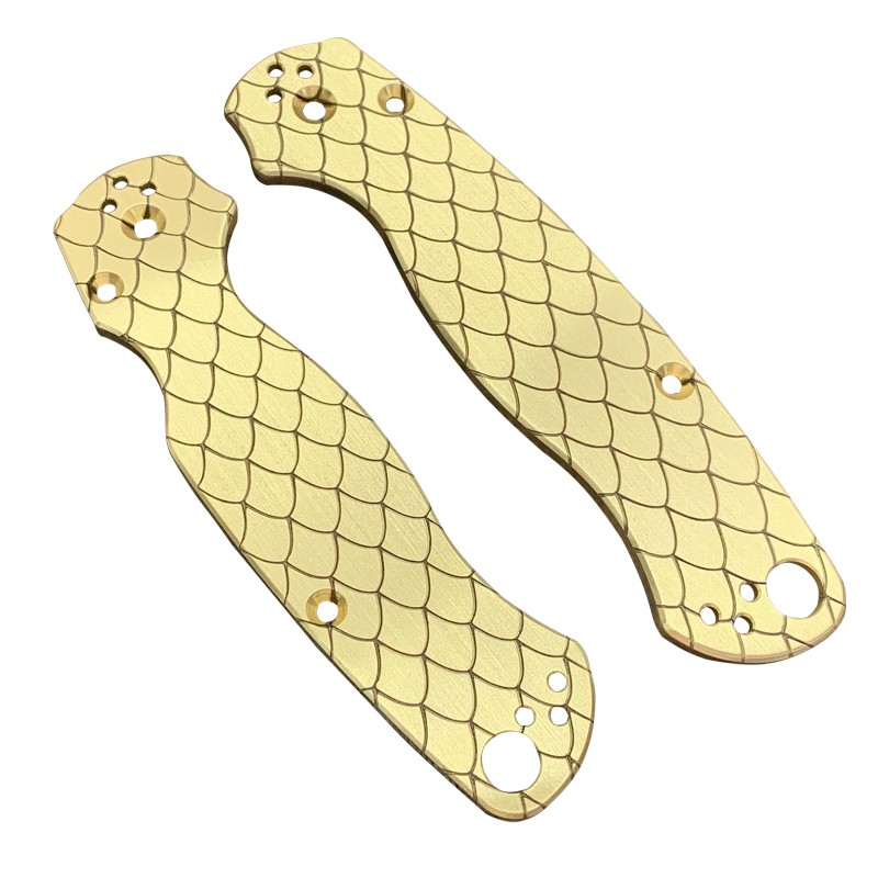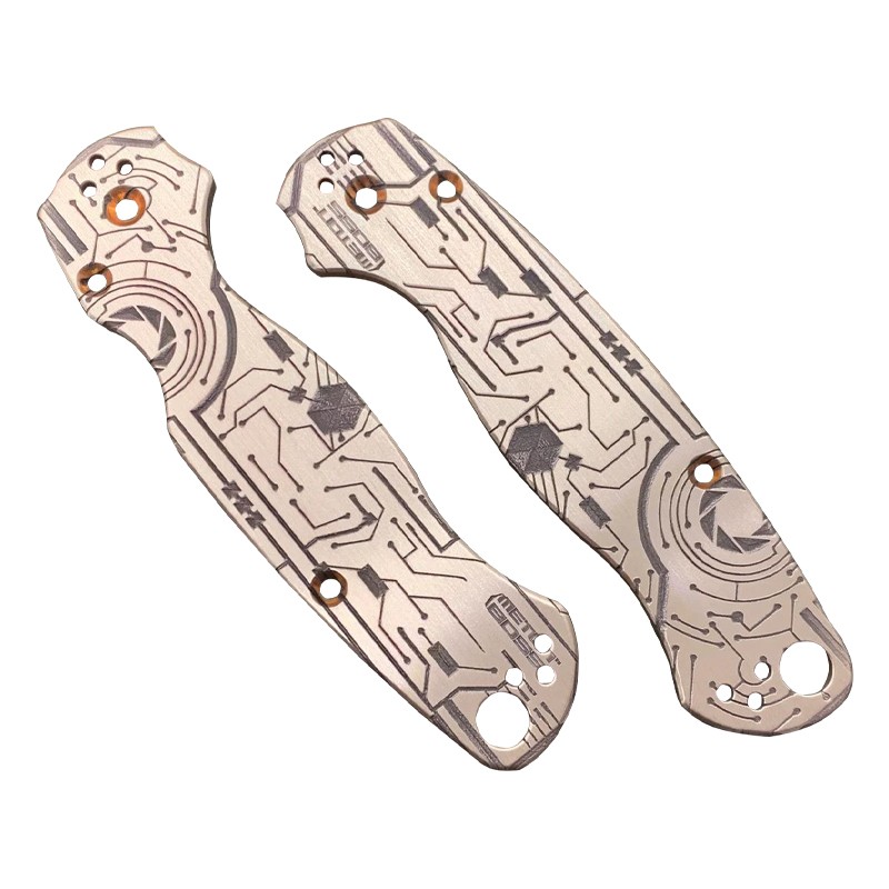 We use different materials: G10, aluminum, titanium, brass, copper, Micarta etc.