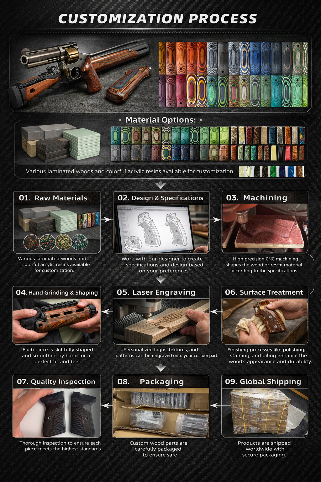 Our factory supplies all kinds of color high density, wear-resistant, high strength, good processing performance and other characteristics of raw materials and processing, can be used in a variety of handles, crafts, bows, grips and other production.